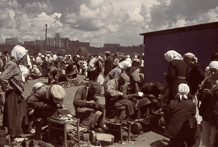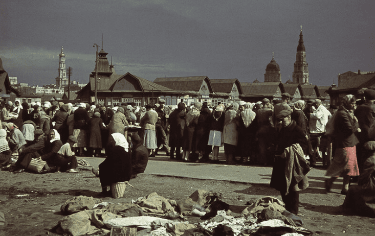А вот во время немецкой оккупации в городе был настоящий голод. Харьковчане, пережившие тот страшный период, называют 24 октября 1941 года  черным днем. С первых дней оккупации стало тяжело. Ворвавшиеся немцы забирали абсолютно все, что попадалось им на глаза. Те, кто успел спрятать хоть какие-то запасы масла, соли и муки, продержались дольше. Некоторые выносили на Благовещенский базар  различные вещи, чтобы продать их и купить продукты. В обиходе появился термин “грабиловка”. И это было не про немцев. Это был один из способов раздобыть себе еду. В большинстве случаев “грабиловкой” занимались дети. Группировались по несколько человек и пока двое или трое отвлекали внимание продавца, один незаметно брал яблоко, луковицу или что попадется.