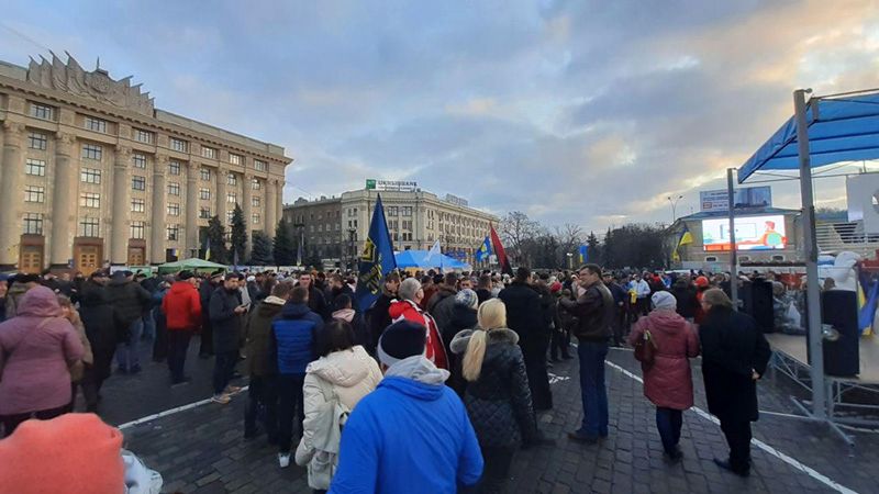Напомним, акция «Красные линии для Зеленского» в Харькове началась вчера. На площади собралось около двухсот человек. Параллельно подобные акции еще в нескольких крупных городах Украины, а киевский Майдан собрал около 8 тысяч человек. На главной площади Харькова была установлена сцена, с которой было провозглашено начало Народного вече. Выступали представители нескольких организаций, в том числе «Национальный корпус», «Ветеранское братство», «Традиции и порядок» ОУН-УПА. Из политических партий своими флагами обозначала себя «Свобода». Акция носила предупредительный характер, как и заявляли сами организаторы. Действительно, многие тезисы, звучащие с трибуны повторяли слова Президента Украины относительно вопросов выборов на оккупированных территориях и контроля государственной границы. Солидарно со словами Зеленского выступающие утверждали, что не может быть выборов в ОРДЛО до тех пор, пока там присутствуют незаконные вооруженные формирования. Не может ни выборов, ни интеграции пока донбасский участок не контролируется украинскими пограничниками.