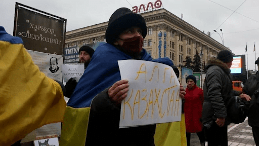 Як повідомляє “Укрінформ”, біля намету “Все для перемоги”, який розташовано поруч із Харківською обласною державною адміністрацією, зібралося 30 мітингуючих осіб з плакатами “Алга Казакстан!” (Вперед, Казахстан!), “Слава Україні!”, “Приймай нас, НАТО, в своє лоно”. Основним гаслом мітингу було “Скажи “ні!” Путіну”, оскільки за думкою “активістів”,  Україна та Казахстан мають спільні проблеми, якими і виступають “корумповані уряди, а також особисто Путін”. Через це в соцмережах “Інстаграм” та “Фейсбук” ці повідомлення були висміяні користувачами із закликом звернути увагу на проблеми, які наразі відбуваються в Україні, а не займатися “миротворчістю”, аргументуючи свої слова тим, що “не може країна, яка стала бідніша за Молдову, займатися такими справами, якщо сама має повне безладдя в державному устрої”.